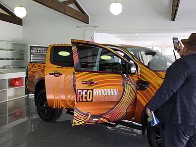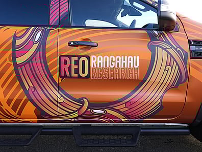 "The brilliance, creative, and culturally innovative design concept of my Reo Rangahau Research brand logo on my Ford ute is a living, breathing mobile art form.