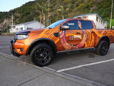 "The brilliance, creative, and culturally innovative design concept of my Reo Rangahau Research brand logo on my Ford ute is a living, breathing mobile art form.