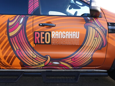 Reo Rangahau asked us to create a sense that the vehicle, brand colour and text is an invaluable moving, mobile brand, a continuous living repository taking research culture, knowledge and change into the target audience consciousness.